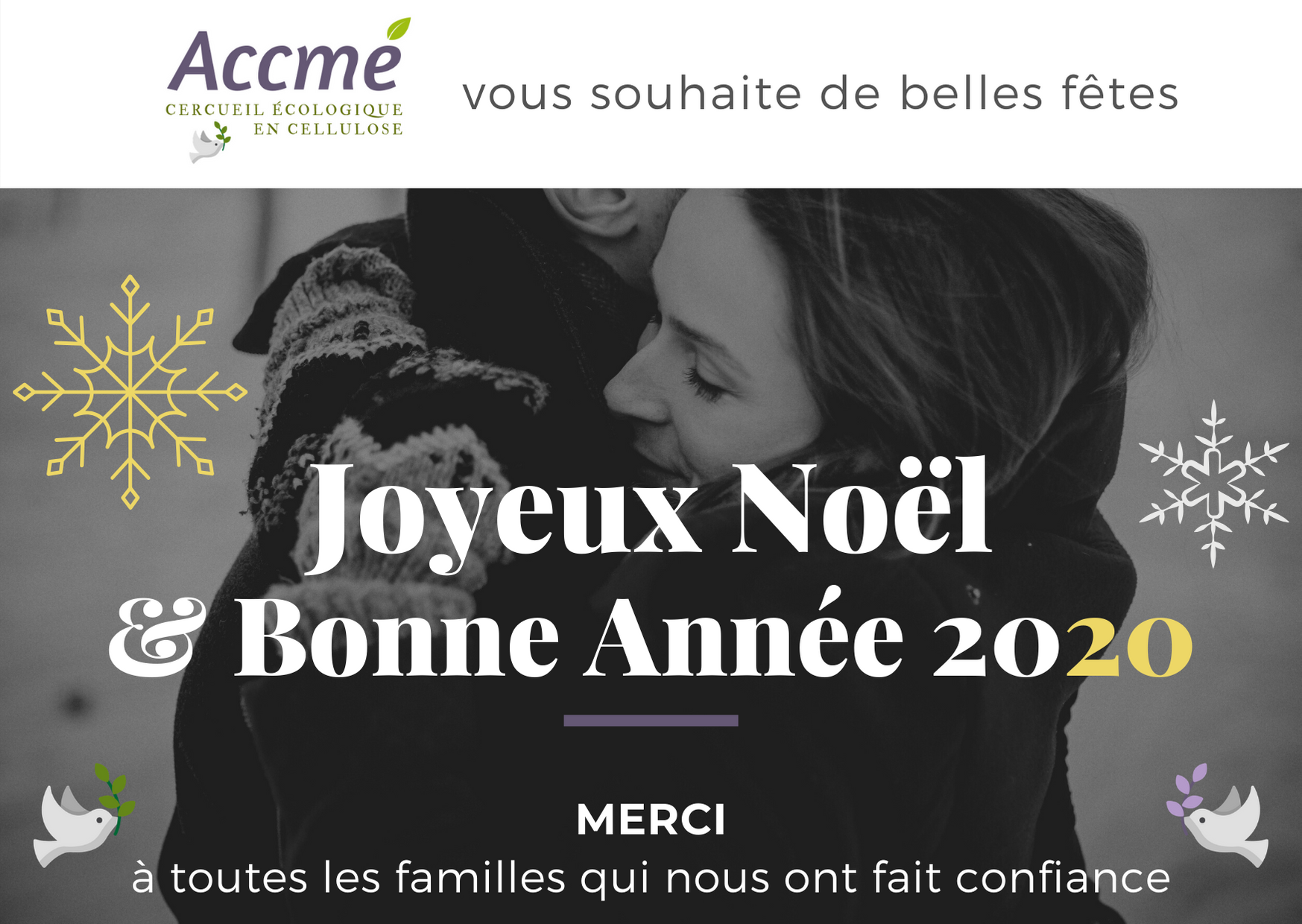 Cercueil écologique en... 22/12/2019 Cercueil écologique en... 22/12/2019 Toute l'équipe d'Accmé vous souhaite de belles fêtes ! Lire la suite